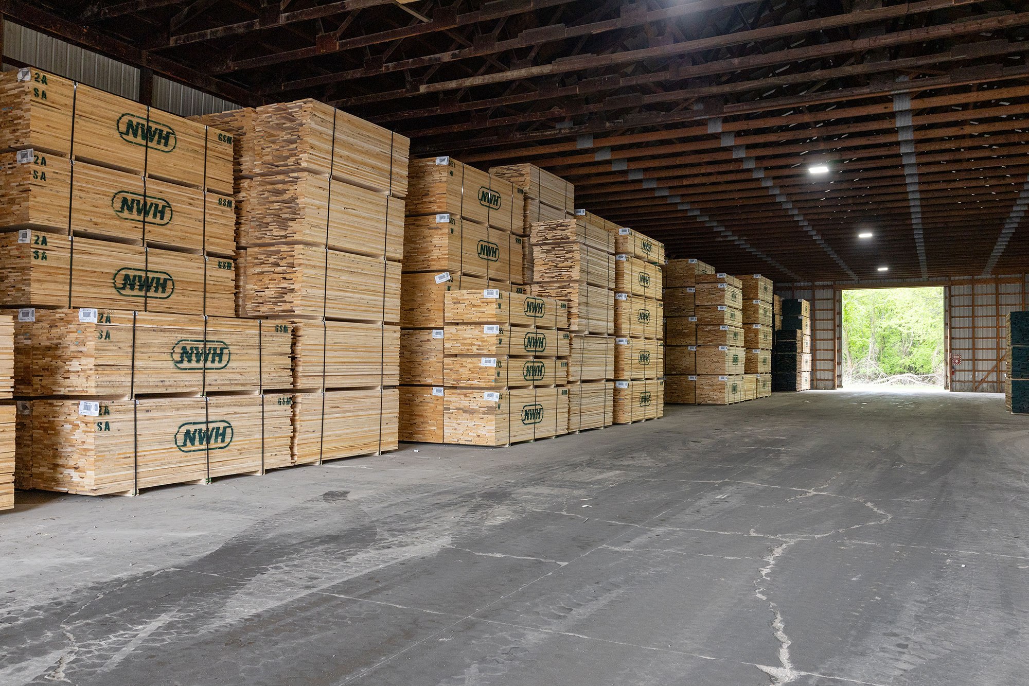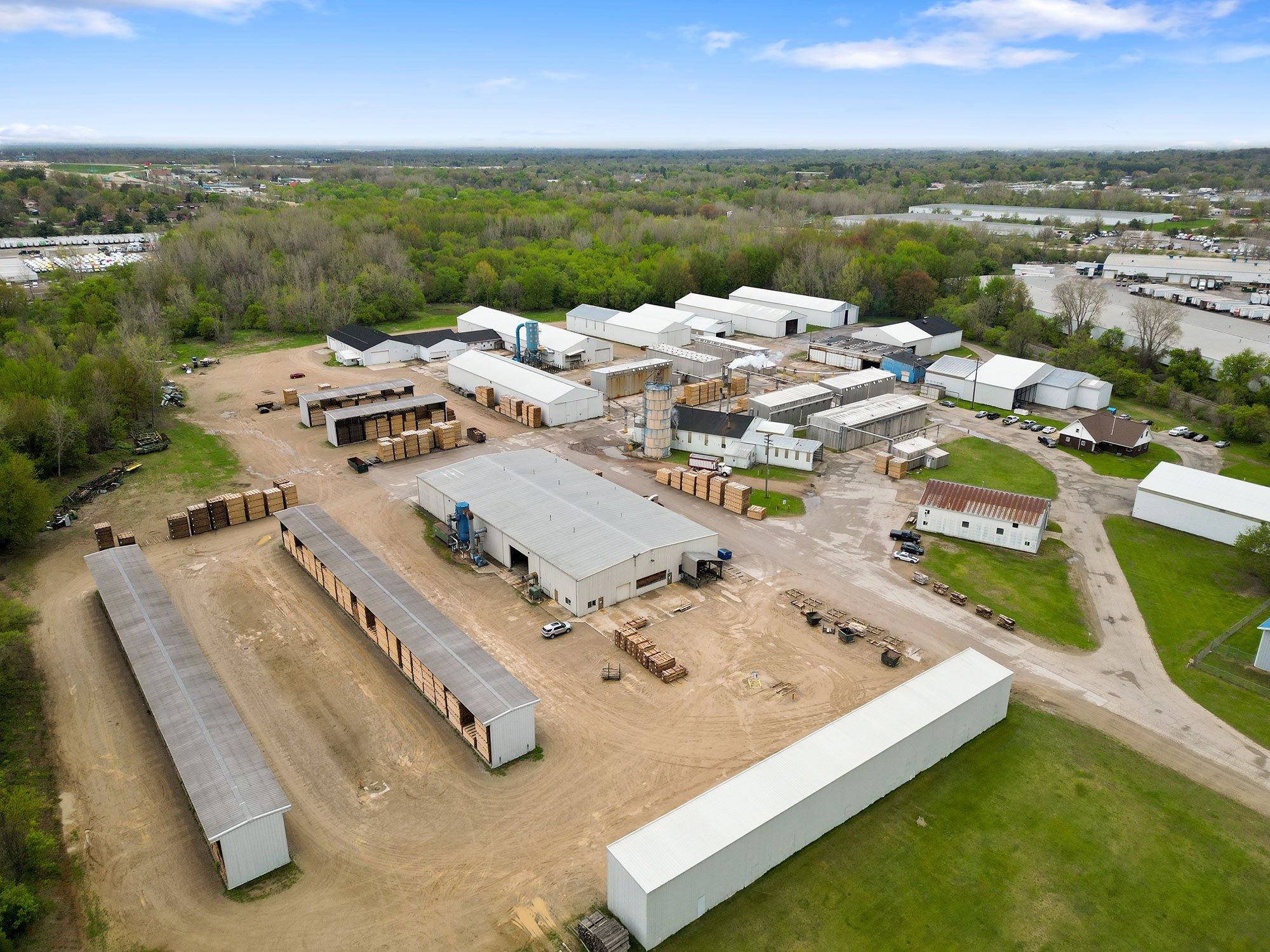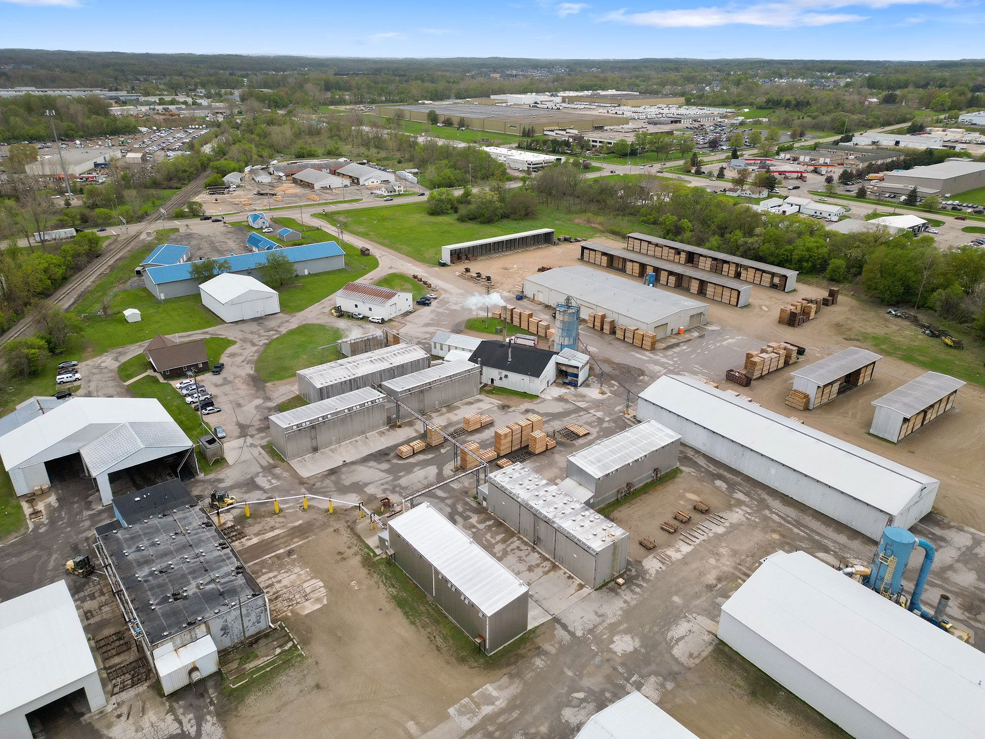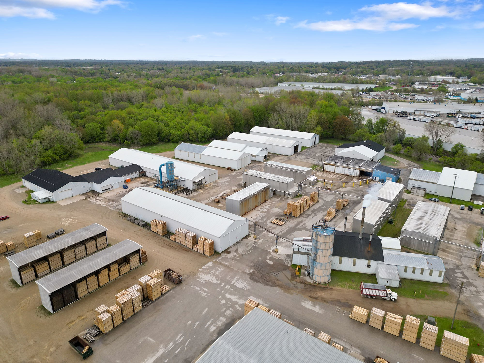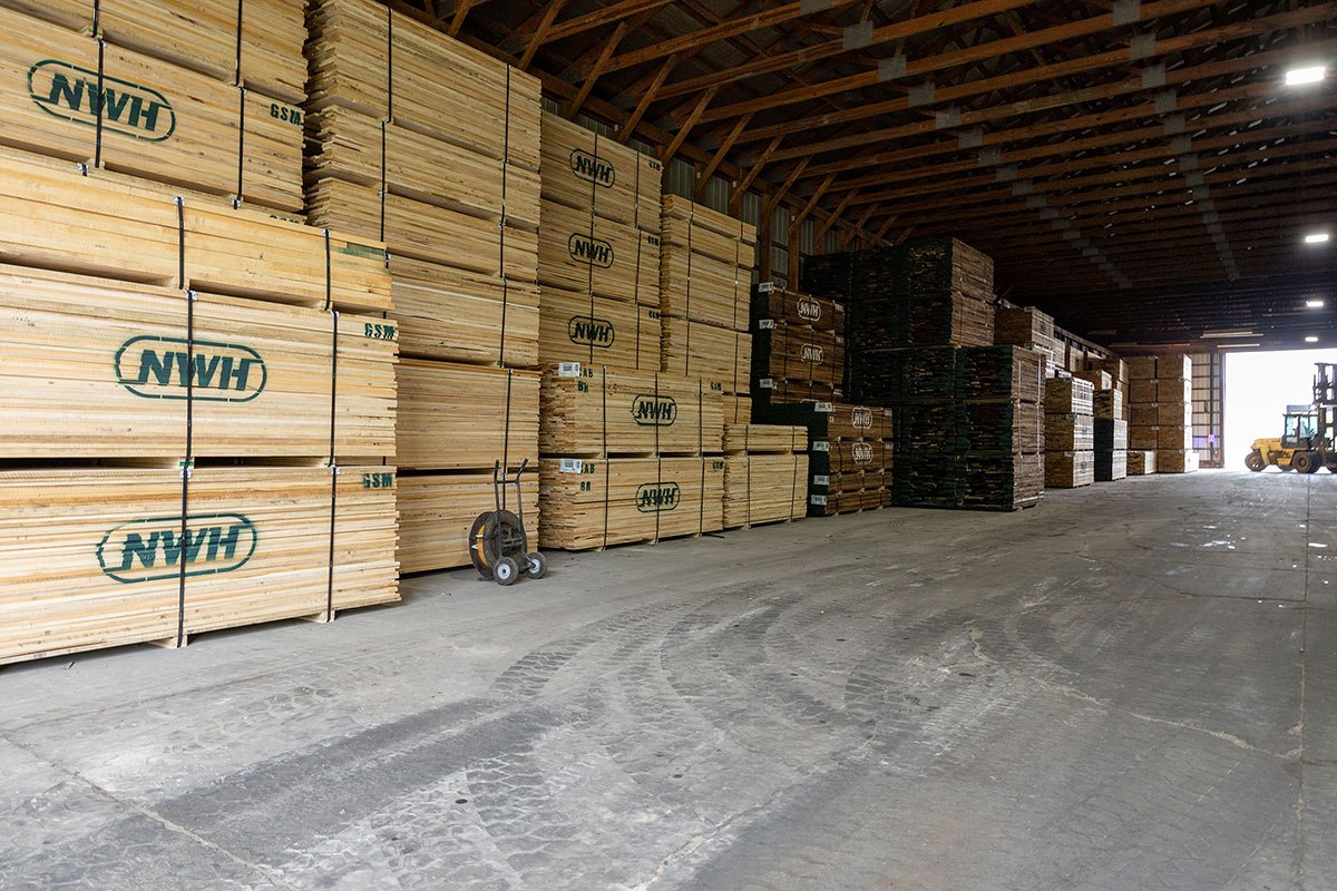 Originally Budres Lumber before being purchased by Weyerhaeuser in 2006, the Grand Rapids site has grown into a major NWH operation. Today, the facility spans 38 acres with an estimated 180,000 square feet under roof—not including its extensive kiln capacity. The site houses 18 kilns with a total capacity of 820 MBF and produces approximately 15 million board feet of kiln-dried lumber annually.