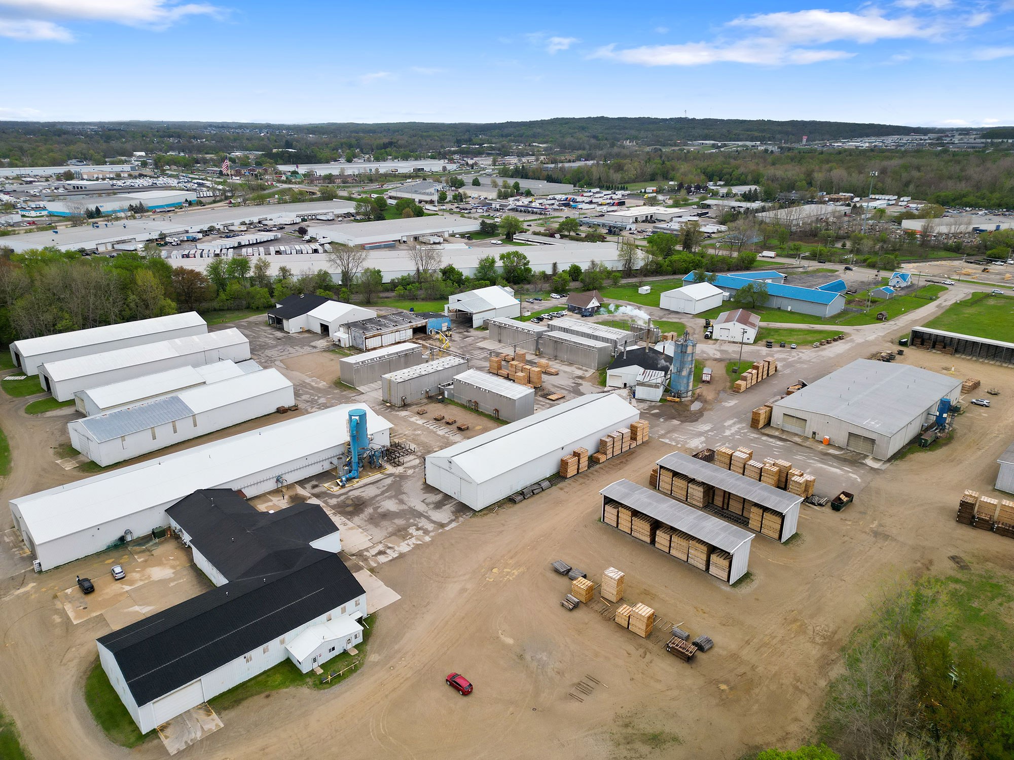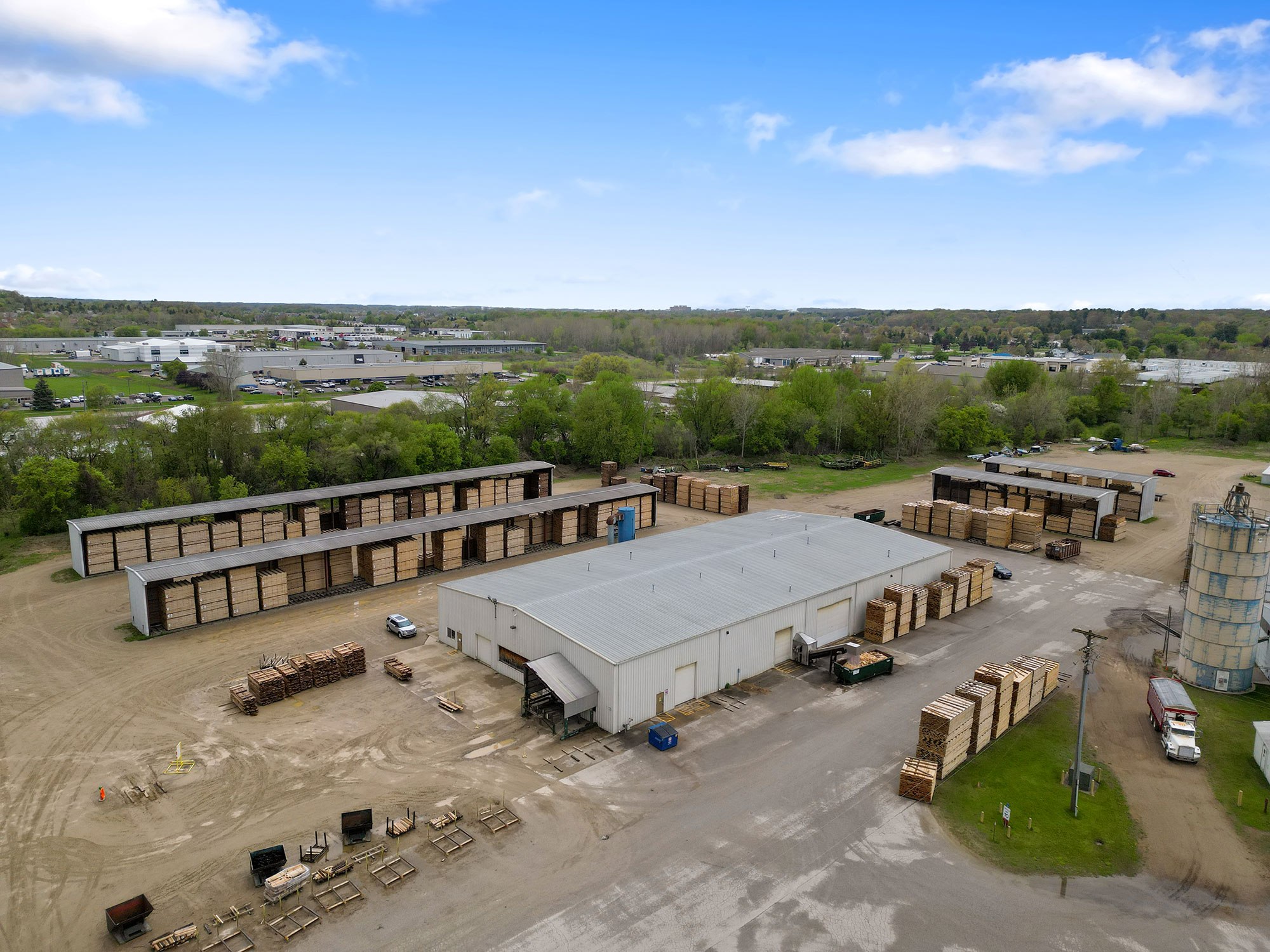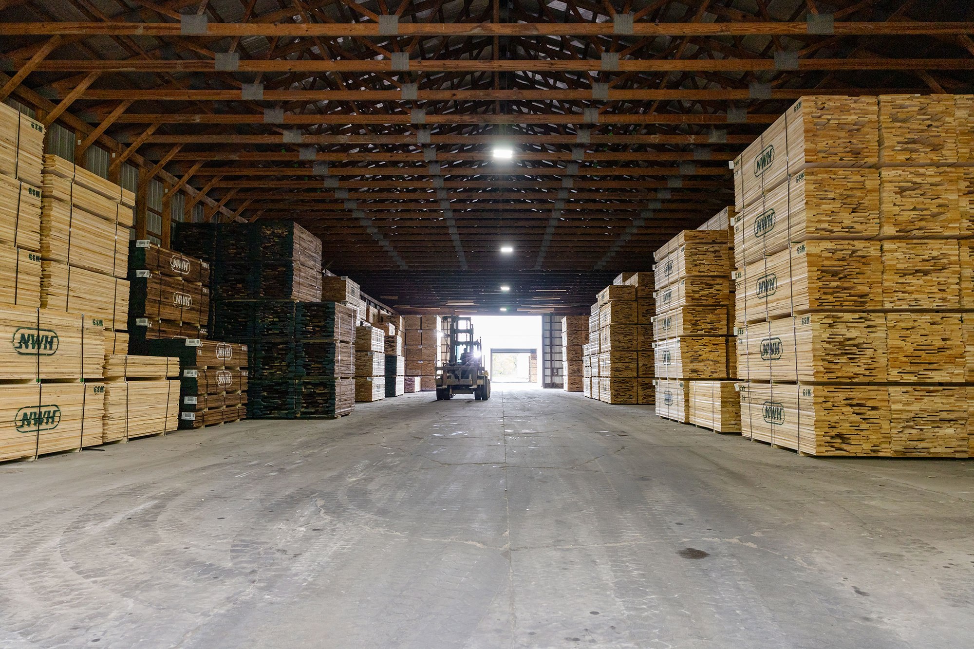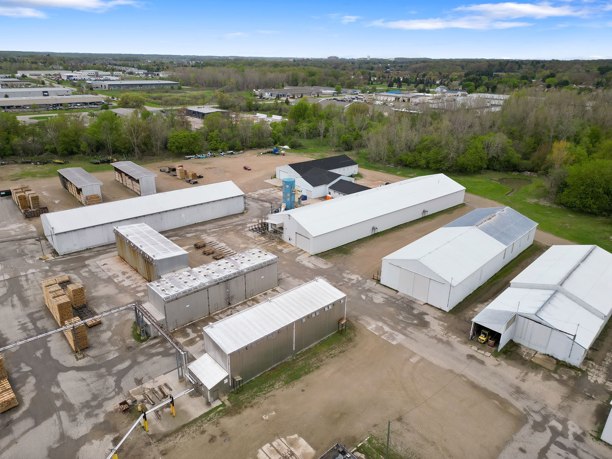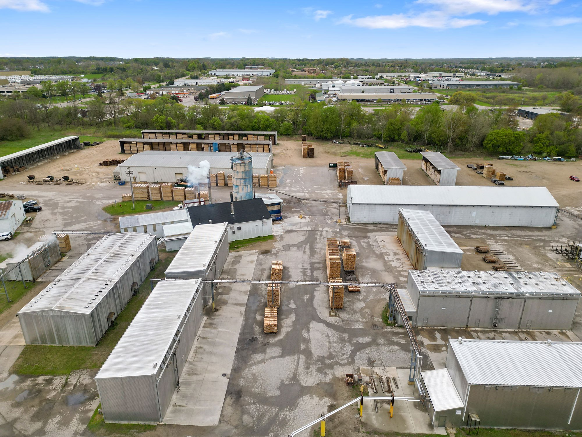 Originally Budres Lumber before being purchased by Weyerhaeuser in 2006, the Grand Rapids site has grown into a major NWH operation. Today, the facility spans 38 acres with an estimated 180,000 square feet under roof—not including its extensive kiln capacity. The site houses 18 kilns with a total capacity of 820 MBF and produces approximately 15 million board feet of kiln-dried lumber annually.