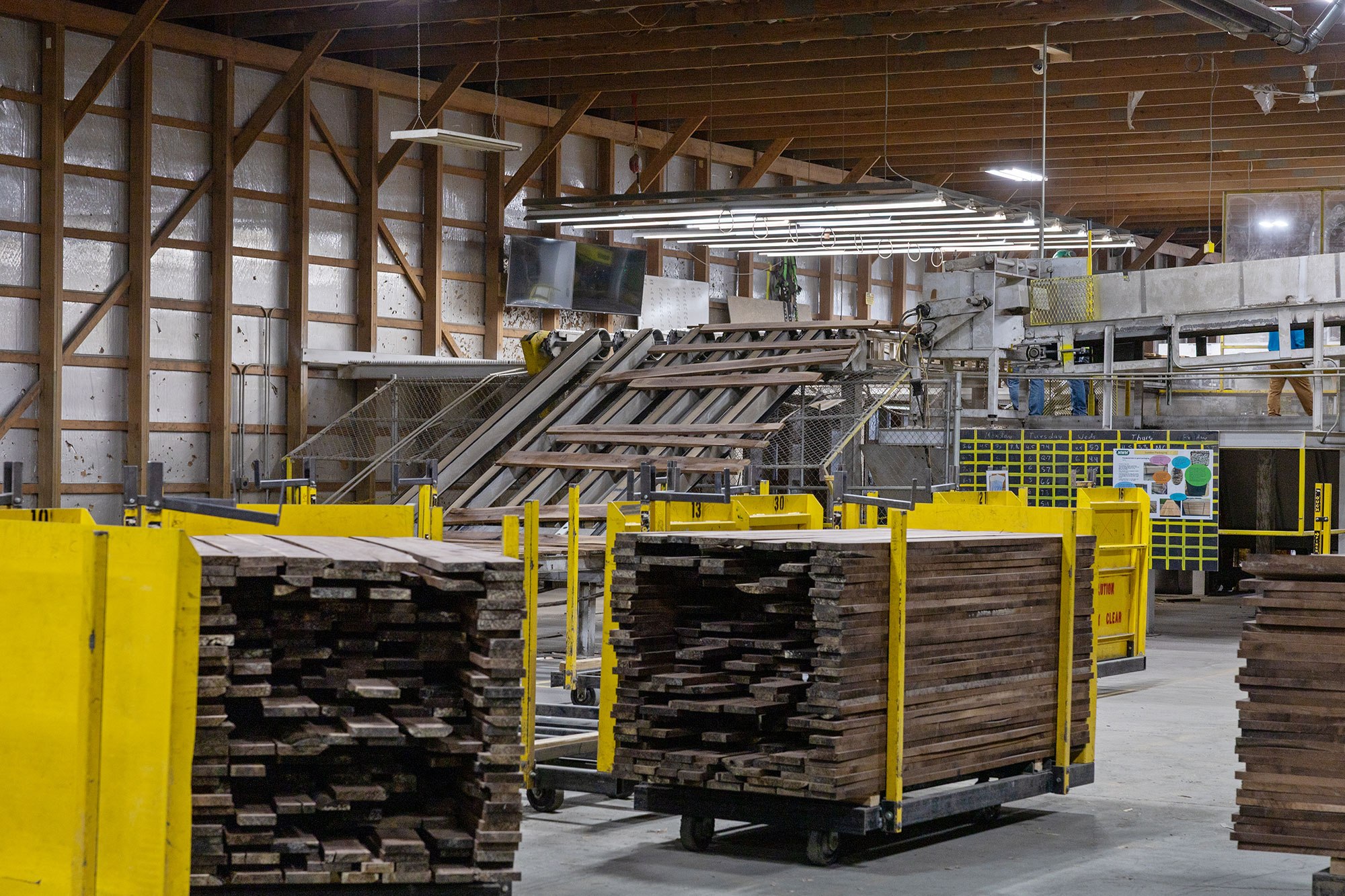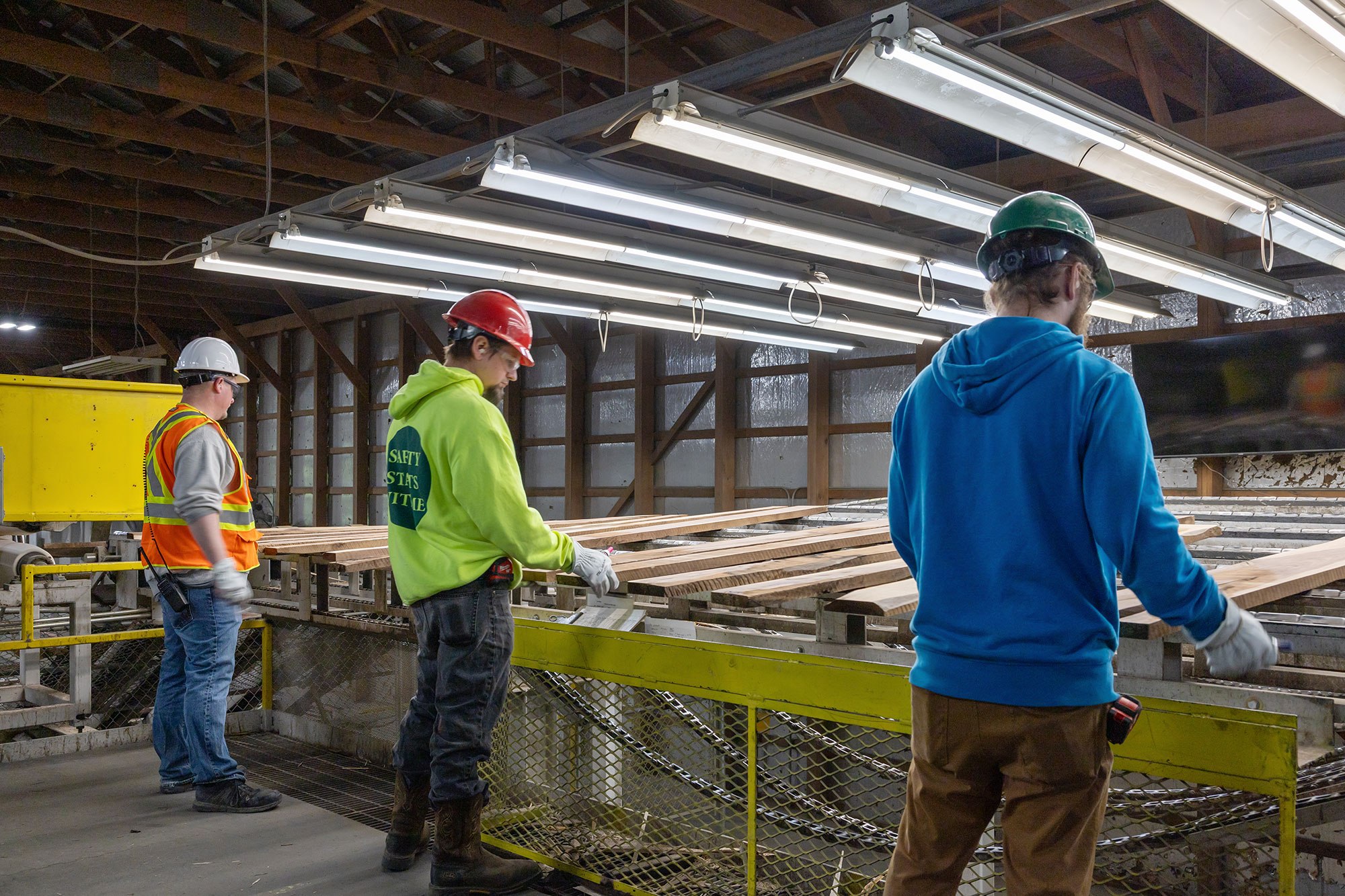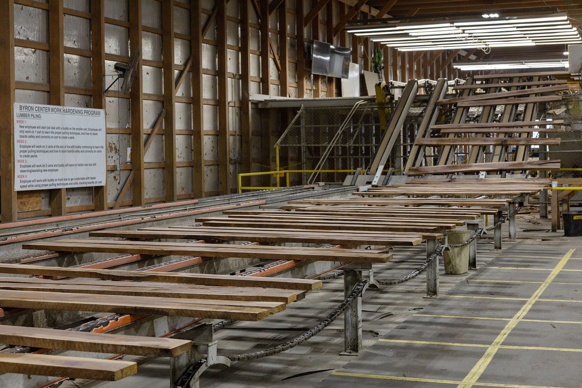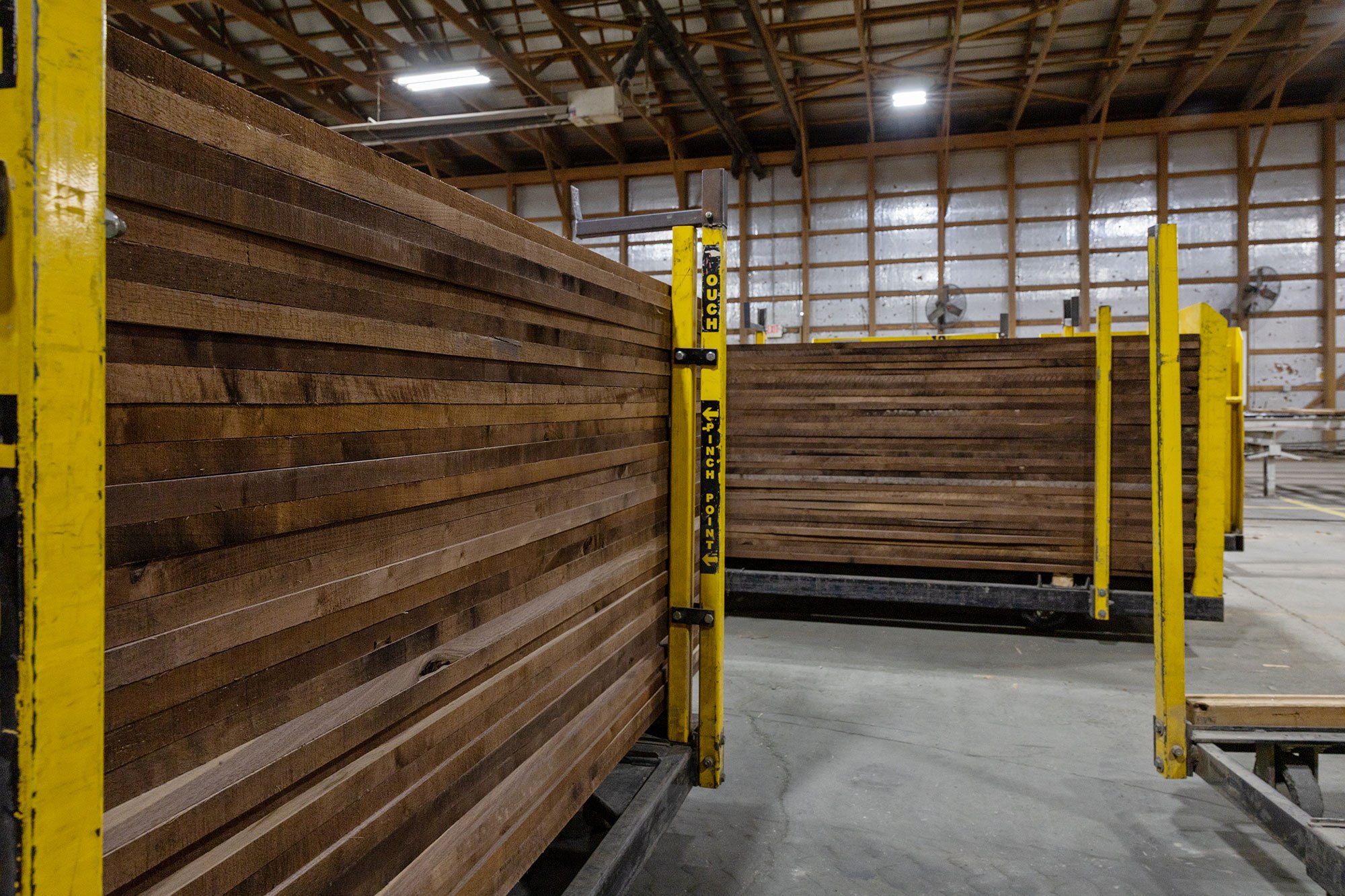 - A four-head abrasive planer, uncommon in the region, which helps refine lumber color and overall appearance before shipping.
