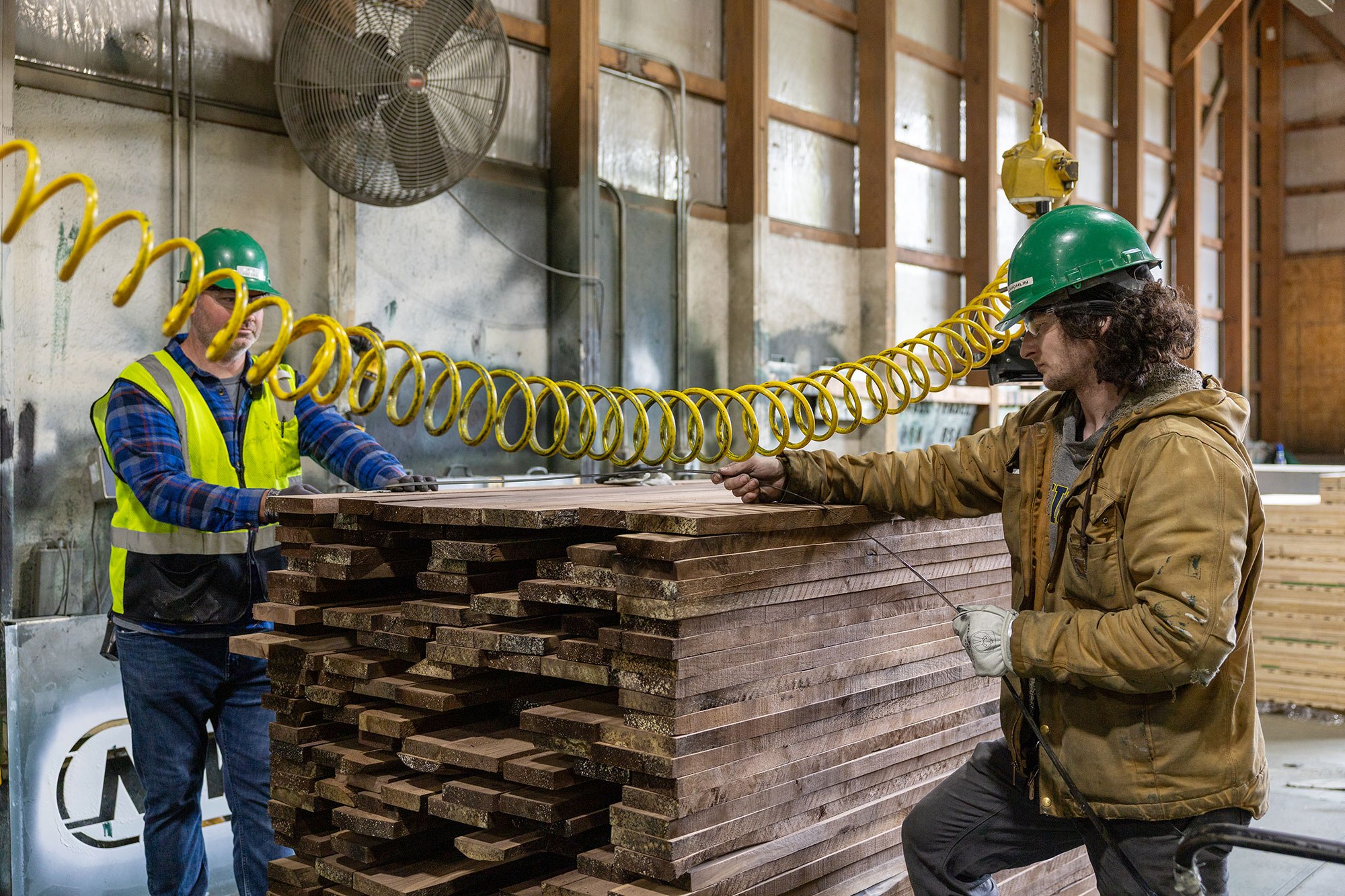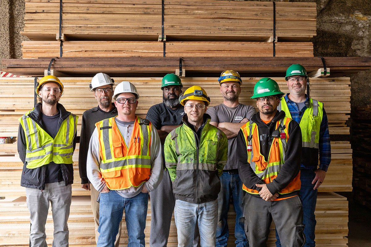 The team is known for stepping outside traditional job roles whenever needed—filling in, taking on new tasks, and supporting each other to ensure production stays on track and high-quality is maintained. With valuable species moving through every stage of the process, protecting quality from the air-dry yard through the kilns, planers, sanders, and shipping is a central focus.
